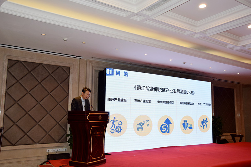 会上,由市商务局副局长黄志中致辞,镇江综合保税区管理局局长徐丹推介了综保区投资环境,解读了《镇江综合保税区产业发展激励办法》。
