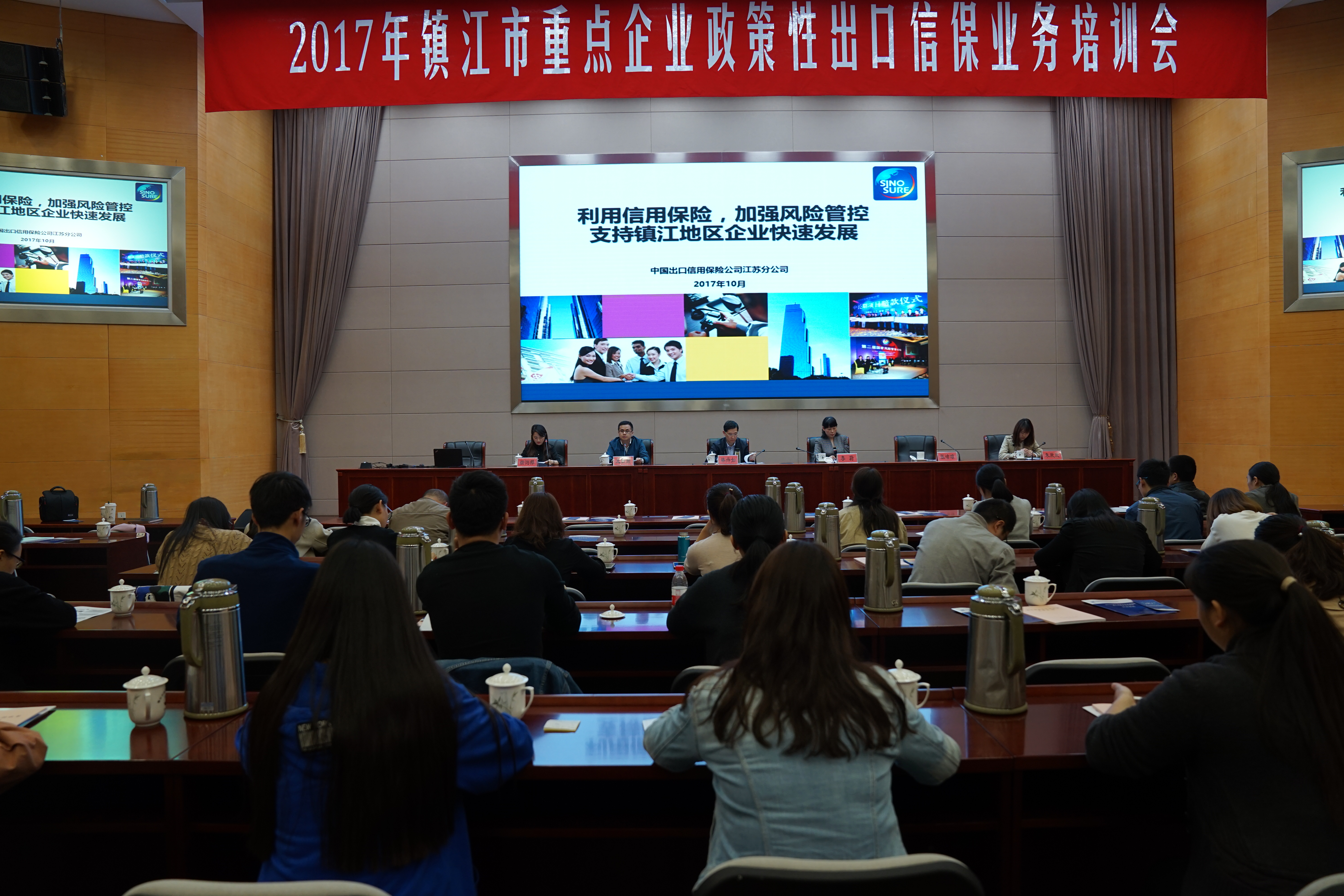 2017年10月26日下午,在会议中心第四会议室bt365体育在线网址联合中国信保江苏分公司召开重点企业出口信用保险业务培训会,市商务局副局长林丹如、市商务局副调研员李蔚、中国信保江苏分公司苏中苏北办事处主任王新顺出席会议,林丹如副局长和王新顺主任分别做了讲话。会议邀请了全辖市的近百位企业代表来参加。